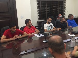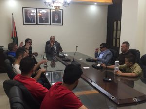 وحضر اللقاء والتكريم كل من نائب رئيس الجمعية الدكتور عمر أبو هنية، والدكتور أحمد بني عيسى أمين سر الجمعية بالإضافة إلى السيد ياسر الشافعي رئيس اللجنة المؤقتة لنادي الشعلة للمكفوفين والكابتن عبد الله الداغستاني مدرب المنتخب الأردني لكرة الهدف.